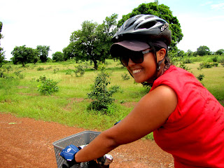 Boulsa to Bilanga (87km): This was a very challenging second day. The route was predominantly inclined and it was a bumpy dirt road. Towards the end of our bike ride to Bilanga, we ran into a huge dam that we were supposed to cross. Normally, cars and bikes pass over the top of the dam, which is cemented. However, with the recent rains, the dam was overflowing. The water was a strong current going over the dam wall and down the other side, making a huge waterfall. I hesitated before crossing, but noticed that other cars and bikes were going across. It was not easy to cross! The current was pulling us towards the edge, which had no barrier stopping people or their belongings from shooting down the waterfall. There were many times when the current almost took me off the side. It was a terrifying experience! We stopped in Bilanga proper to have a big luncheon with all of the officials in the area. There were musical performances and speeches from various people. It’s nice to have big ceremonies where we get to meet people, but it was also strange because we go directly to these events. So, we’re sitting there with nicely dressed officials in our biking spandex and t-shirts, completely covered with dirt caked on by our sweat and our skin is red from the heat and the exertion. After our lunch, we had to bike another 15km to where we would be staying that evening in Bilanga-Yanga. We were so exhausted that it we all showered and went to bed. It wasn’t easy taking bucket baths on the bike tour because there are so many of us, one region for bucket bathing one at a time, and our water has to be brought over by children, one canister at a time.